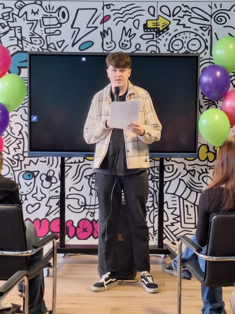 Several of the young people involved in the project addressed attendees directly. They spoke about the pressures young people experience, the normalisation of requests for explicit images and the emotional harm caused when images are shared without consent. They highlighted the responsibility of young men in particular to challenge harmful behaviour and emphasised that real strength lies in respect and protecting others’ dignity. Their contributions reinforced the importance of open dialogue, awareness and collective responsibility.